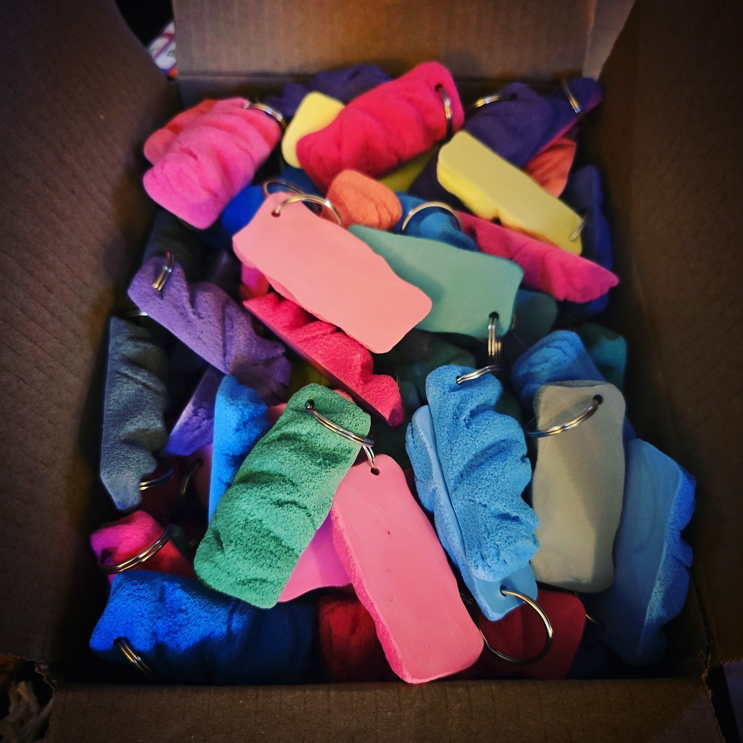 Climbing hold shaped keychain. Rough on one side and smooth on the other. Made from the same materials as actual climbing holds. Every keychain is handmade.