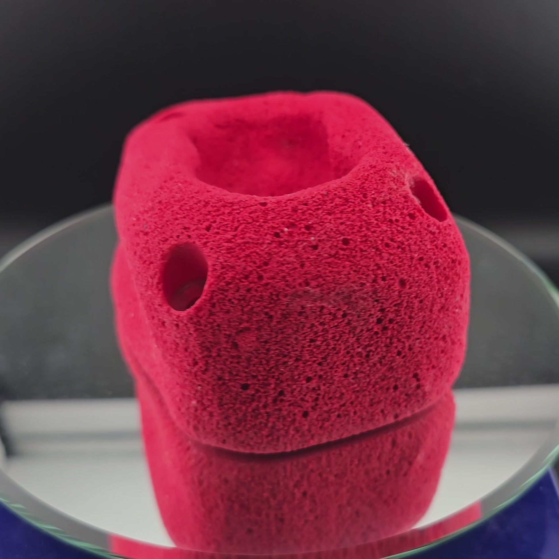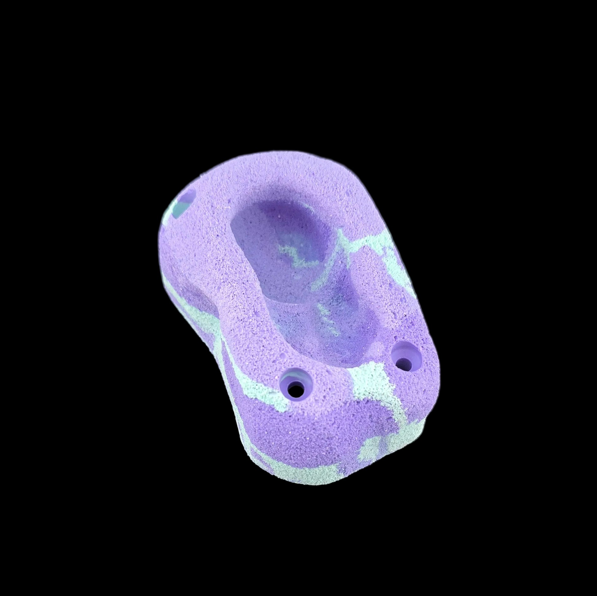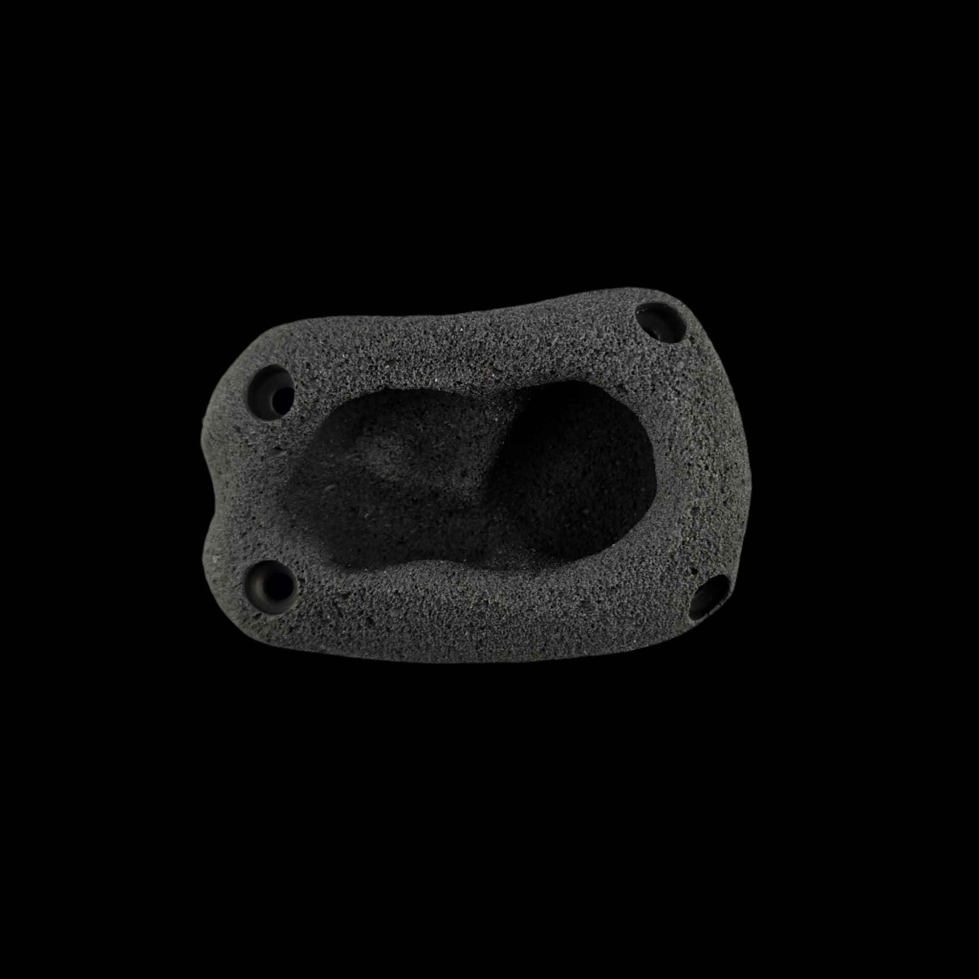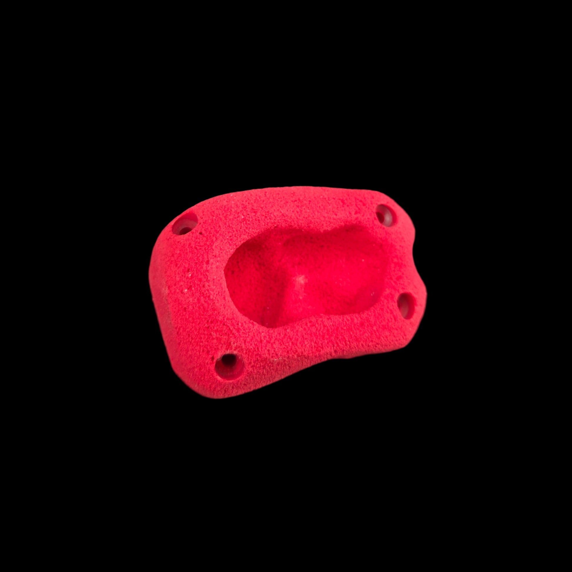 A 3-4 finger pocket with different depths inside. Large enough to also hold onto the outside of the hold if ambitious. This climbing hold is made to be omnidirectional, so you can set it in multiple orientations to change the difficulty to your preference. The screw holes are reinforced with countersunk washers to extend the life of the hold.